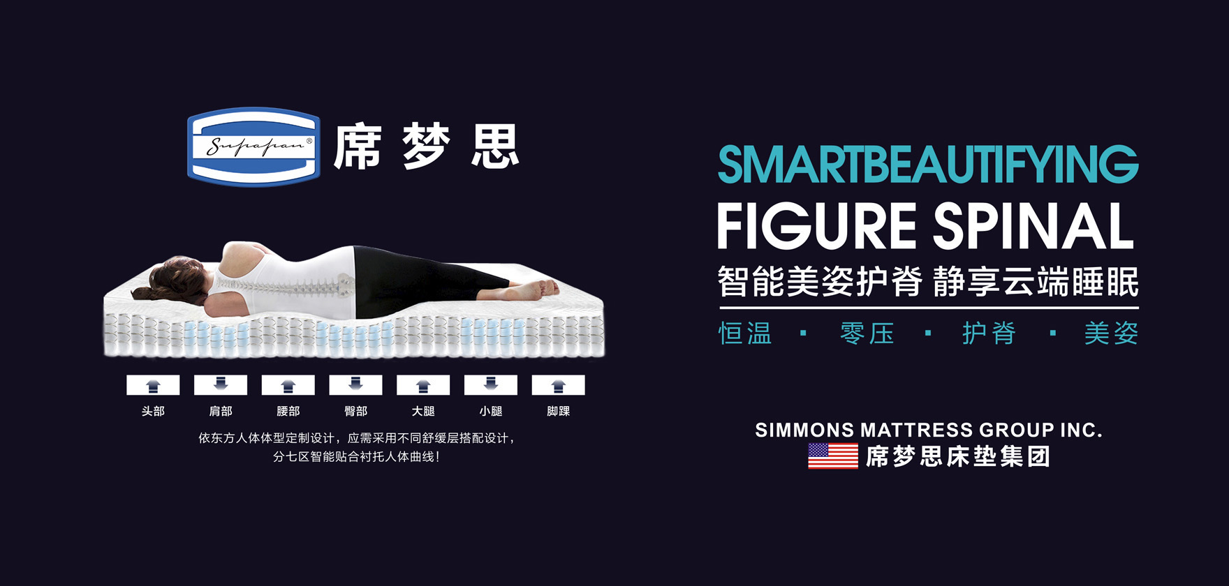American Simmons席夢思床墊,1881年6月26日誕生于美國伊利諾伊州,是一個全球性專業(yè)的健康睡眠品牌。憑借近100多年的專業(yè)制床經(jīng)驗與產(chǎn)品服務(wù),American Simmons席夢思床墊贏得了全球眾多酒店(管理集團(tuán))的信任和青睞,并與之建立了長期戰(zhàn)略合作伙伴關(guān)系。這些酒店(管理集團(tuán))戰(zhàn)略合作伙伴包括:萬豪酒店及度假酒店、康萊德酒店、希爾頓逸林酒店、麗笙集團(tuán)、索菲特酒店、亞特蘭蒂斯酒店、JW萬豪酒店、皇冠假日酒店、溫德姆酒店等。